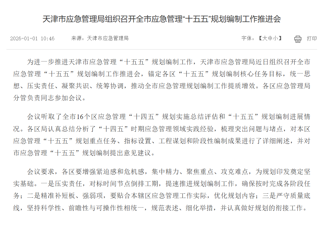 天津市应急管理局组织召开全市应急管理“十五五”规划编制工作推进会