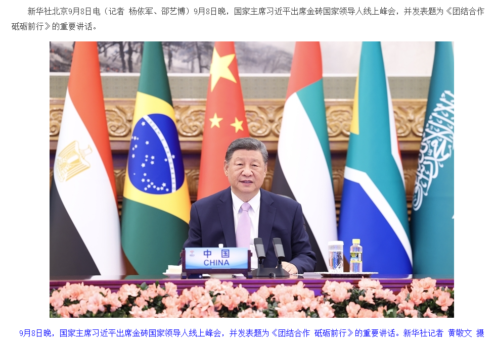 习近平出席金砖国家领导人线上峰会并发表重要讲话