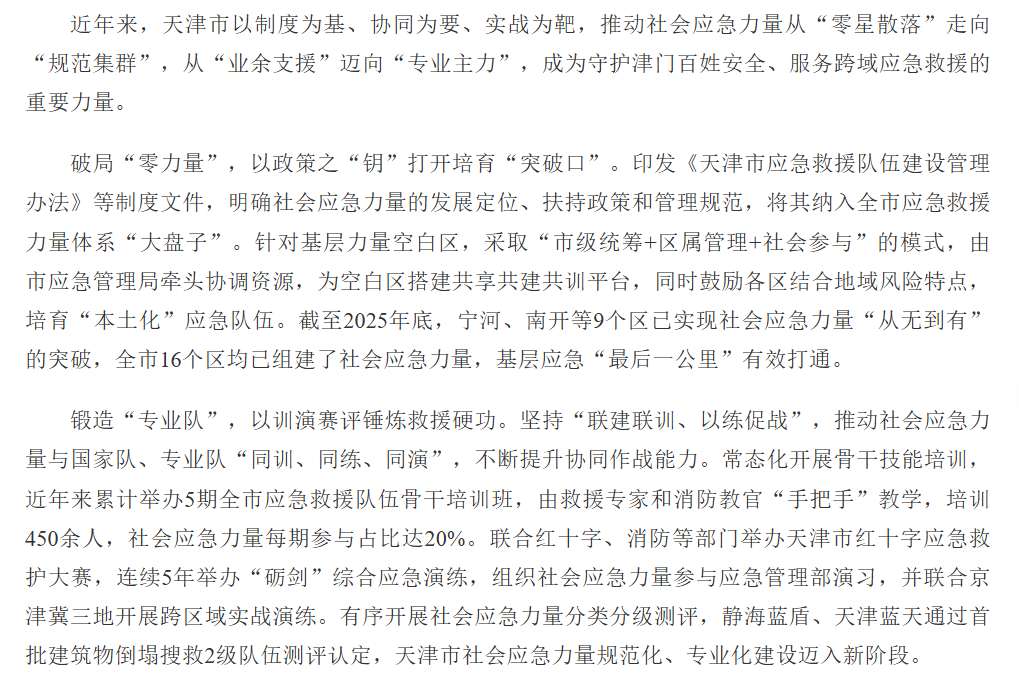 天津市多措齐施激活社会应急力量 筑牢基层末梢安全屏障