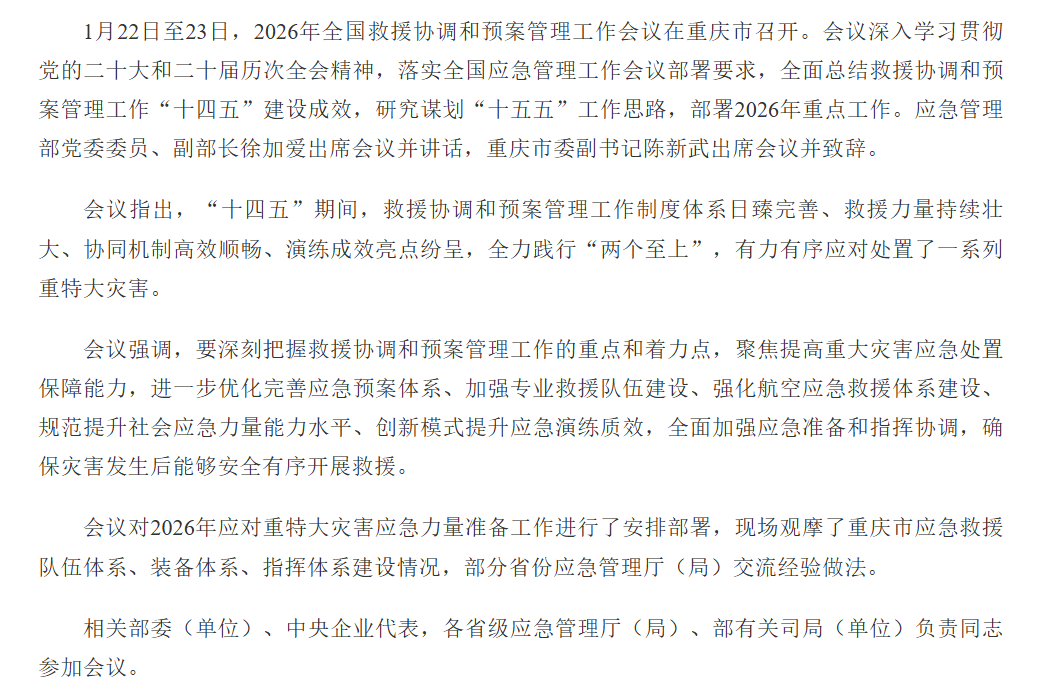 2026年全国救援协调和预案管理工作会议召开