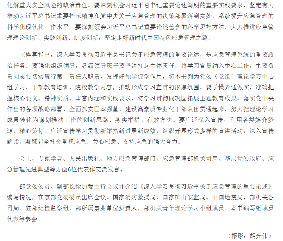 应急部召开《深入学习贯彻习近平关于应急管理的重要论述》学习交流研讨会