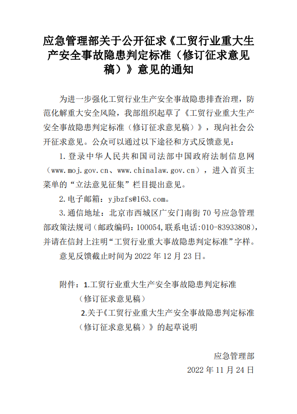 下一篇:关于公开征求《关于进一步加强国家安全生产应急救援队伍建设的意见(征求意见稿)》意见的函